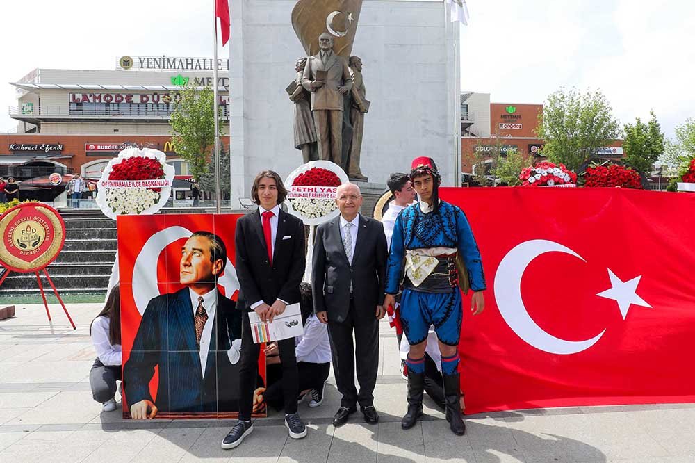 Kutlamalar sabahın erken saatlerinde, Yenimahalle Belediyesi Hizmet Binası önü ve Batıkent Murat Karayalçın Kent Meydanı’nda bulunan Atatürk büstüne Yenimahalle Belediye Başkanı Fethi Yaşar, siyasi parti temsilcileri ve demokratik kitle örgütlerinin çelenk bırakmasıyla başladı.