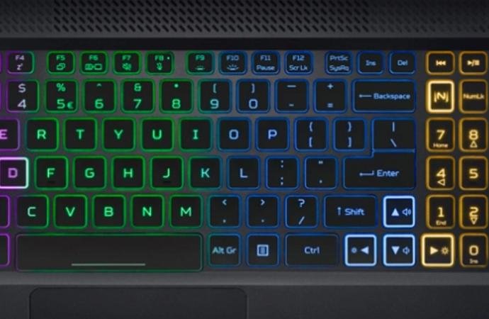 Laptop’ın klavyesi ise beklentileri fazlasıyla karşılıyor. Tuşların hissiyatı yumuşak ve ergonomik bir şekilde rahat yazmaya izin veriyor. Klavyenin RGB arka aydınlatmaları 4 bölüme ayrılmış. Aydınlatmaları Acer’ın NitroSense uygulaması üzerinden özelleştirebiliyorsunuz. Buradan RGB’leri ister statik ister dinamik olarak her renkte ayarlamak mümkün. Ayrıca klavyenin sayısal tuş takımına NitroSense’i hızlıca açmak için özel bir tuş dahil edilmiş.