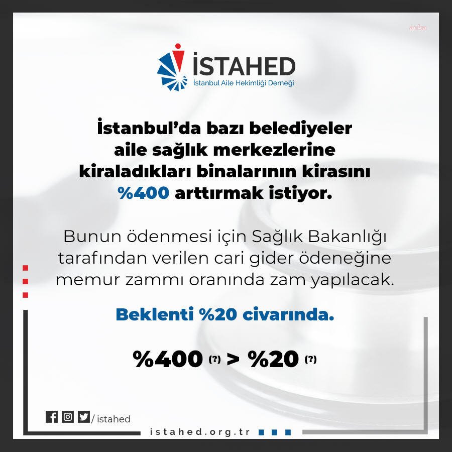 Özellikle İstanbul’da Aile Hekimleri kira durum ve zam sebepleri nedeniyle bina sahipleriyle karşı karşıya kalmakta; İSTAHED’in avukatı, onlarca kira sebebiyle oluşan tespit tahliye davalarını takip etmektedir. Aile hekimleri ise onca işin arasında bir de mahkeme ile uğraşmak zorunda kalmaktadır. Bu uyarımız dikkate alınmadığı takdirde ülkemizdeki birçok ASM kapanacak ve milyonlarca vatandaşımız aile hekimsiz kalacaktır. Karar idarenindir.”