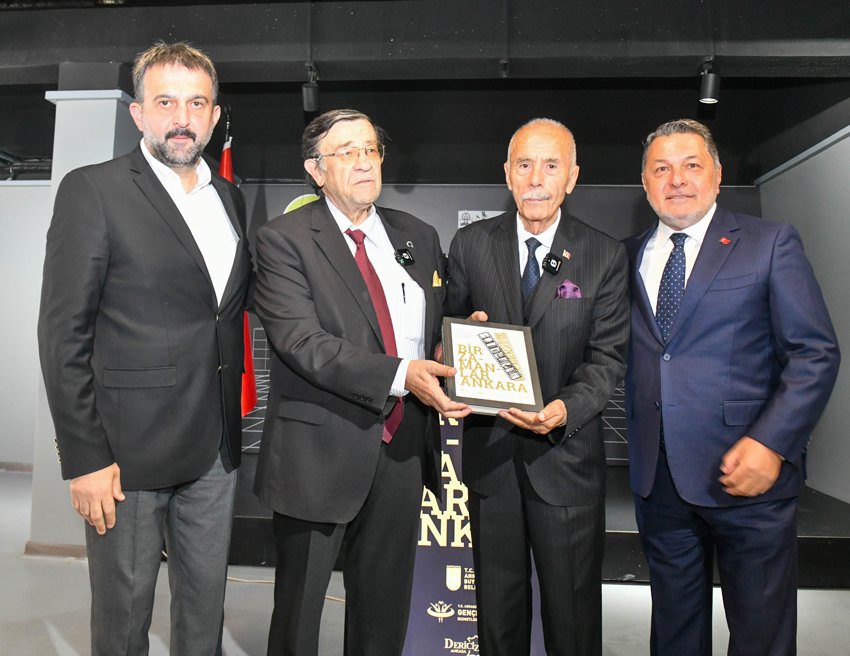 Dericizade Faruk Küçük’e, ABB Başkanı Mansur Yavaş adına anı tablosu takdim eden ABB Başkan Vekili Faruk Köylüoğlu, “Bir Zamanlar Ankara” kitabının, Başkentlileri eski Ankara’ya götüren çok değerli bir eser olduğunu vurgulayarak şu ifadeleri kullandı: