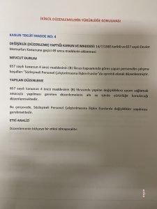 Düzenleme ile kamu kurum ve kuruluşlarında 657 sayılı Devlet Memurları Kanunu’nun 4’üncü maddesinin (B) fıkrası, bazı kanun ve kanun hükmünde kararnameler kapsamında ve mahalli idarelerde sözleşmeli personel istihdam ediliyor. Bu personelin memur kadrolarına atanmaları, ayrıca 4 yıldan daha az hizmeti bulunanların bu süreyi doldurduktan sonra kurum içi veya kurumlar arası naklinin yapılabilmesi düzenleniyor. Bu personelin mazeret nakli süresinin 1 yıldan 4 yıla çıkarılması muhalefet tarafından eleştiriliyor. Bu düzenleme ile 4’üncü Maddenin (B) fırkası kapsamında çalışan 413 bin 671 kişi, mahalli idarelerde çalışan 36 bin 346 kişi, aile hekimliklerinde çalışan aile sağlığı elemanı olarak çalışan 3 bin 542 kişi, sulama birliklerinde çalışan 32 kişi olmak üzere toplamda 453 bin 620 kişi kadroya geçiyor.