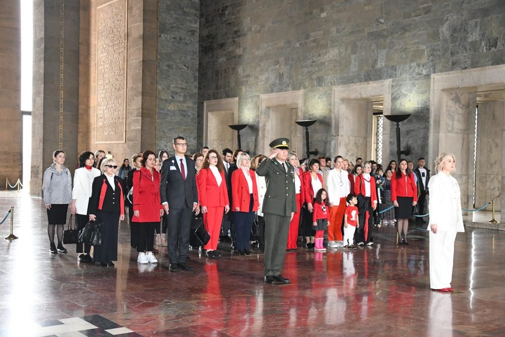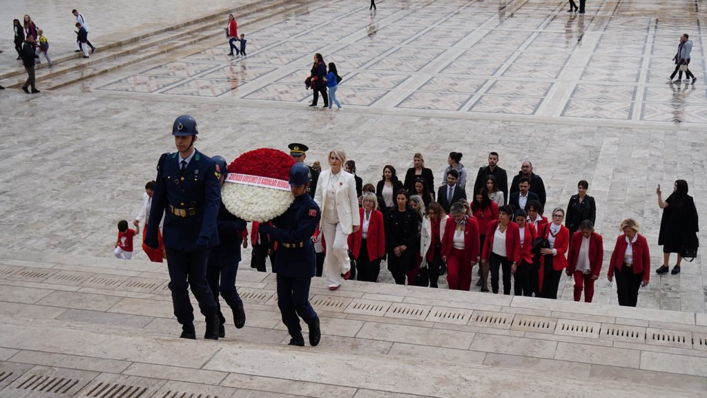Avluda başlayan tören, Başkan Hande Öztürk’ün önderliğinde Ata’nın huzuruna çıkılarak mozoleye çelenk bırakılması ile devam etti. Saygı duruşunun ardından heyet, Misak-ı Milli Kulesi’ne geçti.