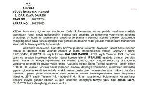 Oda’nın temyiz başvurusunu görüşen Ankara Bölge İdare Mahkemesi 5. İdari Dava Dairesi, Ankara 2. İdare Mahkemesi’nin verdiği kararın kaldırılmasına ve davaya konu olan işlemin iptaline karar verdi.