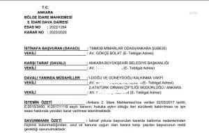 Mimarlar Odası Ankara Şubesi Başkanı Tezcan Karakuş Candan, konuya ilişkin bugün yaptığı yazılı açıklamada, Ankara Bölge İdare Mahkemesi’nin kararını şöyle değerlendirdi: