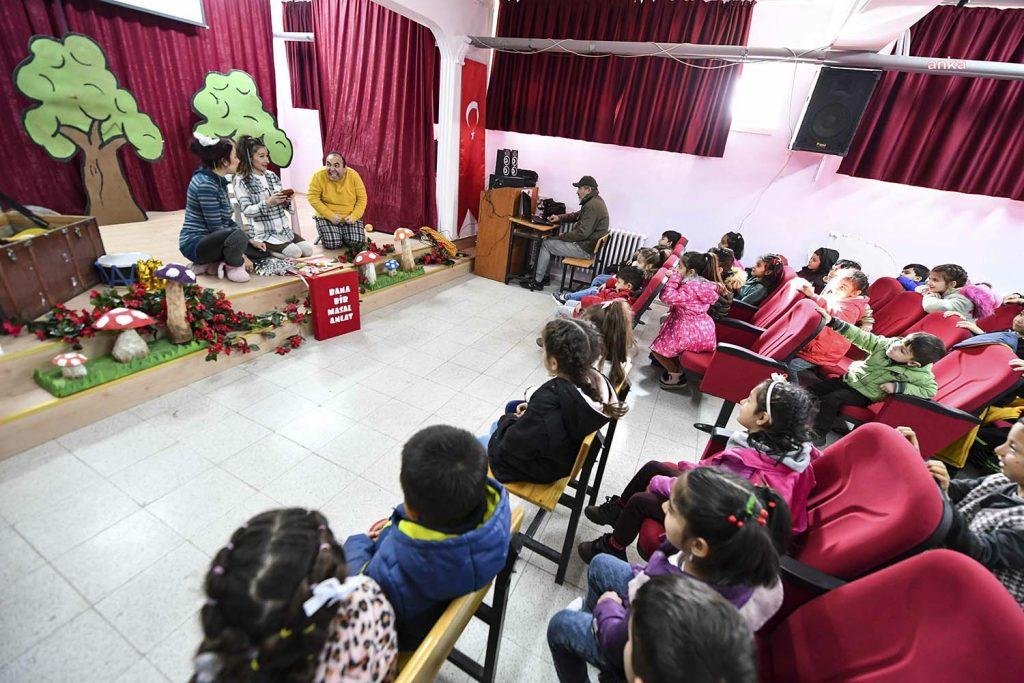 ABB Şehir Tiyatroları da bu kez perdelerini Kesikköprü Yerleşkesi’nde kalan depremzede çocuklar için açtı. Çocuklar, Nergiz Zaimi’nin yazdığı ve yönettiği tek perdelik çocuk oyunu ‘Bana Bir Masal Anlat’ı izledi.