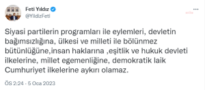 AYM’nin bu kararının ardından MHP Genel Başkan Yardımcısı ve İstanbul Milletvekili Feti Yıldız, konuya ilişkin sosyal medya hesabından açıklama yaptı. Yıldız, şunları kaydetti: