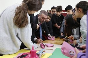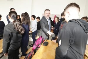 Başkan Ercan Şehit Gökhan Uysal Ortaokulu’nu ziyaret ederek öğrencilerle bir araya geldi. Öğrencilerle sohbet eden Başkan Ercan’ın onlarabir de sürprizi vardı; kırılmayan, yazımı kolay akıllı kalem seti hediye etti.