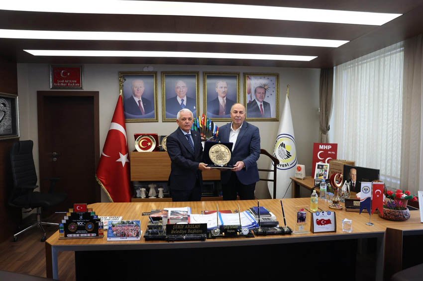 Başkan Şahin’e ziyaretlerinde; CHP Meclis Üyesi Ercan Aksu, Başkan Yardımcısı Orhan Sancak, Özel Kalem Müdürü Erol Karaköse ve Danışman İsmail Gençkurt eşlik etti.