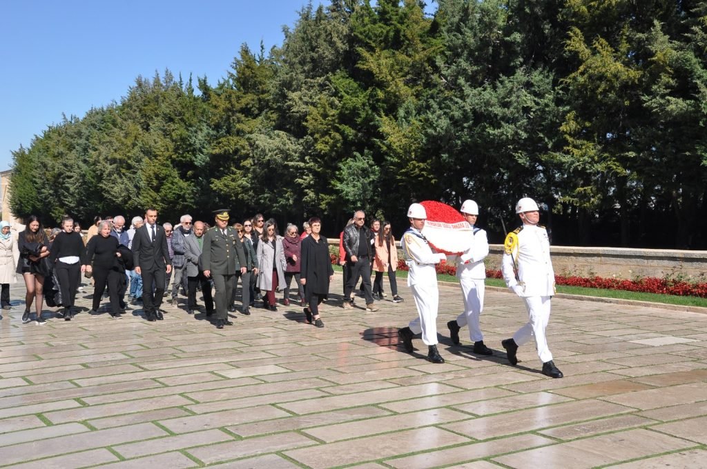 Tören aslanlı yolda yürüyüş ile başladı, daha sonra Ata’nın huzuruna çıkılarak mozoleye çelenk bırakıldı.