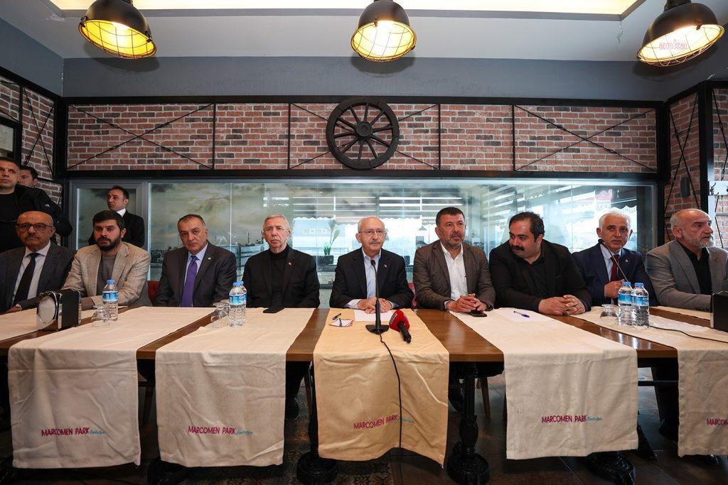 Kılıçdaroğlu’na; CHP Sözcüsü Faik Öztrak, CHP Genel Sekreteri Selin Sayek Böke, CHP Yerel Yönetimlerden Sorumlu Genel Başkan Yardımcısı Seyit Torun, CHP Genel Başkan Yardımcısı ve Malatya Milletvekili Veli Ağbaba, CHP Grup Başkanvekili Özgür Özel ile Ankara Büyükşehir Belediye Başkanı Mansur Yavaş eşlik etti.
