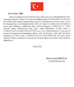 Cumhurbaşkanı Erdoğan’ı imzasını taşıyan kararlara göre; emekli Orgeneral Ahmet Çörekçi (91), emekli Korgeneral Hakkı Kılınç (83) ve emekli Tuğgeneral İdris Koralp’in (75) cezaları, Adli Tıp Kurumu’nun verdiği sağlık raporunda yer alan kocama hali sebebiyle kaldırıldı.