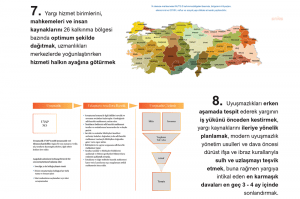 -Yargı hizmet birimlerini, mahkemeleri ve insan kaynaklarını 26 kalkınma bölgesi bazında optimum şekilde dağıtmak, uzmanlıkları merkezlerde yoğunlaştırırken hizmeti halkın ayağına götürmek