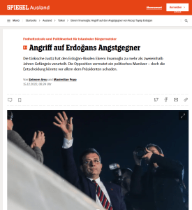 DER SPIEGEL: Türk yargısı Erdoğan’ın rakibi Ekrem İmamoğlu’nu iki buçuk yıldan fazla hapis cezasına çarptırdı. Muhalefet siyasi bir manevra yapıldığından şüpheleniyor ancak bu karar Cumhurbaşkanı’na zarar verebilir.