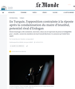 LE MONDE: Türkiye’de muhalefet, Erdoğan’ın potansiyel rakibi olan İBB Başkanı’nın mahkûm edilmesinin ardından tepki verdi.