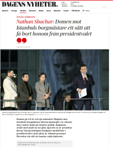DAGENS NYHETER: İBB Başkanı Ekrem İmamoğlu’na verilen 2 yıl 7 aylık hapis cezası bekleniyordu ancak yine de bu ülke siyasetini sarsıyor. Yönetimin bu davayla amacı, Cumhurbaşkanı Recep Tayyip Erdoğan’ın önümüzdeki sene haziran ayında yapılacak Cumhurbaşkanlığı seçimlerindeki en tehlikeli rakiplerinden birinden kurtulmak. Hüküm giyen kişiler seçimle iş başına gelme hakkından yoksun kalırlar.