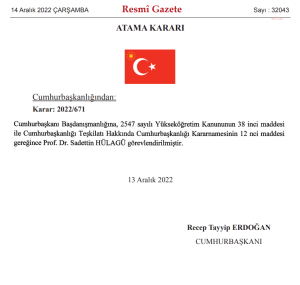 Sadettin Hülagü’nün rektörlük görevi 9 Aralık’ta Resmi Gazete’de yayınlanan kararda Prof. Dr. Nuh Zafer Cantürk’ün Rektörlüğe atanmasıyla sona ermişti.