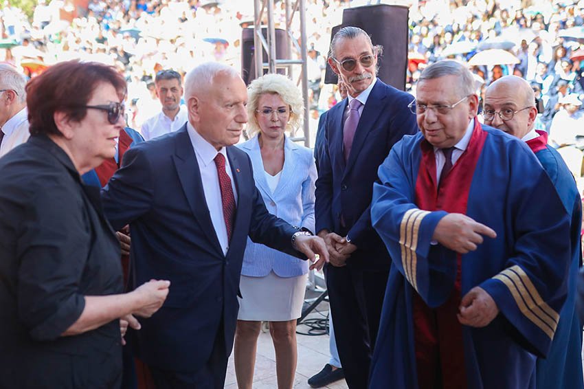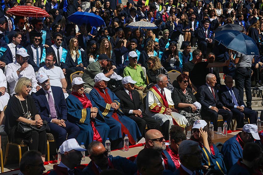 Başkent Üniversitesi’nin kurucusu Prof. Dr. Mehmet Haberal, 10. Cumhurbaşkanı Ahmet Necdet Sezer ve mezunların ailelerinin de yoğun bir katılım gerçekleştirdiği mezuniyet töreninin son gününde Prof. Dr. Haberal, kürsüye çıkarak “Hepinizle gurur duyuyorum. Bu yıl 3 bin 170 öğrenci mezun oldu. Bilimle donatılan binlerce genç, Başkentli olmanın ayrıcalığıyla ülkesine eser katmak, hizmet etmek, Türk bayrağını dünyanın her yerinde en üst düzeyde dalgalandırmak için yola çıktı. Eğitim ve sağlıkta sizi başka ülkelere muhtaç etmeyiz, bunu bilesiniz.” dedi.