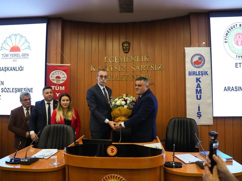 Etimesgut Belediyesi Meclis Salonu’nda düzenlenen imza törenine; Belediye Başkanı Erdal Beşikcioğlu, Tüm Yerel-Sen Genel Başkanı Mücahit Dede ile belediye bünyesinde görev yapan memurlar katıldı. Törende konuşan Başkan Beşikcioğlu, imzalanan sözleşmenin 2026–2027 dönemini kapsadığını ve 7. Dönem Toplu Sözleşme hükümleri çerçevesinde hayata geçirildiğini belirtti.