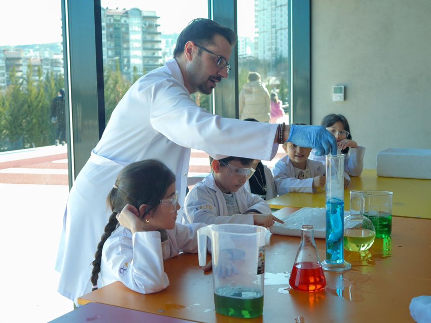 Etkinlikler kapsamında gerçekleştirilen deney atölyesinde çocuklar, farklı uygulamalar aracılığıyla bilimi yakından tanıma fırsatı buldu. Atölye çalışmaları sırasında çocukların merak duygusu desteklenirken, etkinlik alanında gün boyunca yoğun ilgi gözlemlendi.