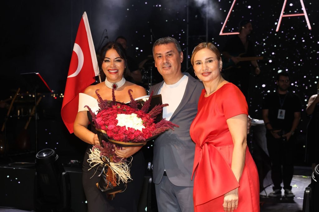 Konser sahnesinde Gölbaşı Belediye Başkanı Ramazan Şimşek ve eşi Yeşim Şimşek sevilen sanatçı ZARA’ya çiçek takdim etti.