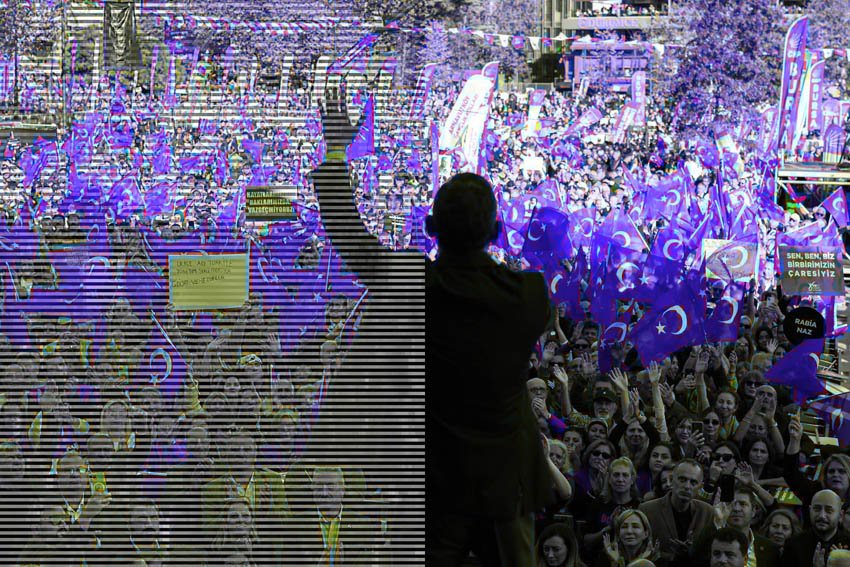 Ekrem İmamoğlu’nun tutuklandığı günden başlayarak haftanın iki günü biri İstanbul ilçelerinden birinde, diğeri bir kent merkezinde düzenlediği mitinglerin ise benzeri siyasi hayatımızda görülmemiştir. Meydanlara kalabalıkları toplamış ve onlarla iletişimini başarılı bir biçimde kurmuştur. Tekrarlarla, kalabalıklara daha önce sol-sosyalist partilerin toplantılarında söylenmekte olan bazı slogan ve marşları geniş kitlelere mal etmeyi başarmıştır. “Kurtuluş yok tek başına, ya hep beraber ya hiçbirimiz” bunlardandır. Bedri Rahmi Eyüboğlu’nun Nazım Hikmet’in hapisliği döneminde yazdığı “Yiğidim, aslansım burda yatıyor” şiiri Uğur Mumcu gibi katledilen devrimciler için söylenirken onu Silivri’de tutuklu İmamoğlu ve arkadaşlarına adapte etmiştir. Mitinglerin demirbaş marşlarından biri olan Gençlik Marşı da muhalefetin mücadele azmini dile getirmektedir.