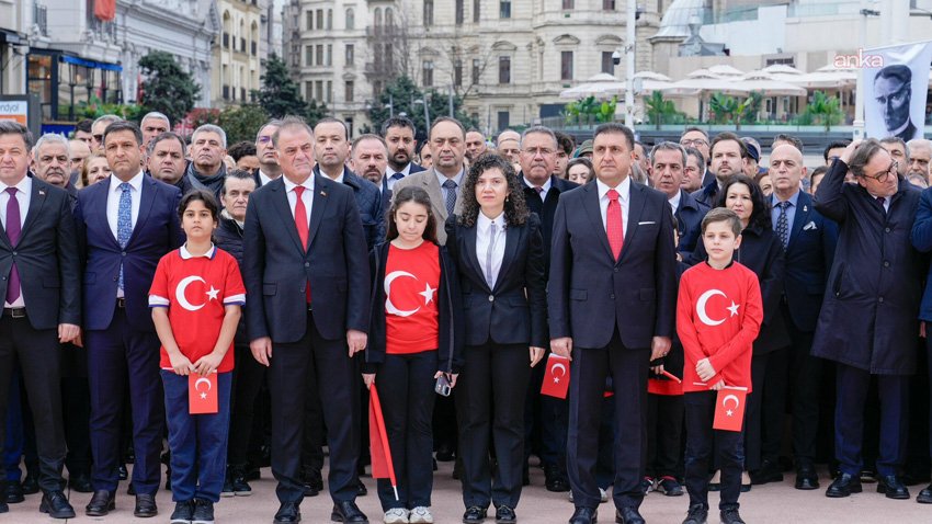 İl Milli Eğitim Müdürlüğü’nün resmi töreninin tamamlanmasının ardından, siyasi partiler ve sivil toplum kuruluşlarının (STK) çelenk sunma törenine geçildi. Tören kapsamında sırasıyla; İstanbul Büyükşehir Belediyesi, İstanbul Barosu, AK Parti, CHP, MHP, İYİ Parti, DEVA Partisi, Gelecek Partisi, Demokratik Sol Parti, Anahtar Parti, Anavatan Partisi, ATA Parti, Bağımsız Türkiye Partisi, Büyük Birlik Partisi, Doğru Yol Partisi, Genç Parti, Hürriyet Partisi, Vatan Partisi, Zafer Partisi, Beyoğlu Belediyesi ve sivil toplum kuruluşları anıta çelenk bıraktı.