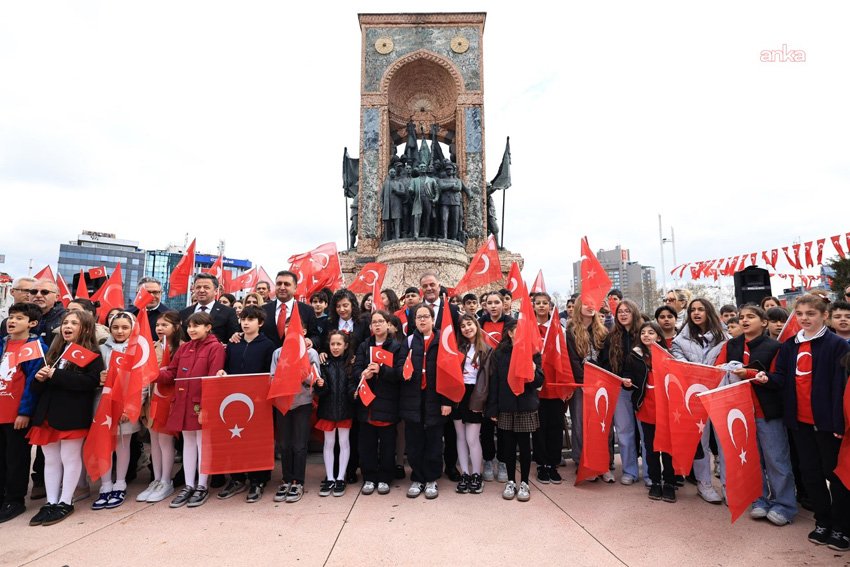 Türkiye Büyük Millet Meclisi’nin açılışının yıl dönümü ve Gazi Mustafa Kemal Atatürk’ün çocuklara armağan ettiği 23 Nisan Ulusal Egemenlik ve Çocuk Bayramı dolayısıyla İstanbul Taksim’deki Cumhuriyet Anıtı’nda resmi çelenk sunma töreni düzenlendi. Törene İBB Başkanvekili Nuri Aslan, İstanbul İl Milli Eğitim Müdürü Murat Mücahit Yentür, İstanbul Barosu Başkanı İbrahim Kaboğlu, siyasi parti temsilcileri, sivil toplum kuruluşları, öğretmenler ve öğrenciler katıldı.