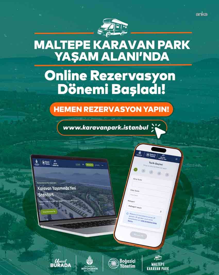 (İSTANBUL) – İstanbul Büyükşehir Belediyesi (İBB) iştiraki Boğaziçi Yönetim AŞ, Maltepe Karavan Park için online rezervasyonları almaya başladı. Sahil şeridindeki konumu, spor alanları, toplu taşımaya kolay erişimi ve yürüyüş yollarıyla çevrili yapısı sayesinde şehrin içinde ama karmaşadan uzak bir deneyim sunan park, karavanseverler için eksiksiz bir yaşam alanı kurguluyor.