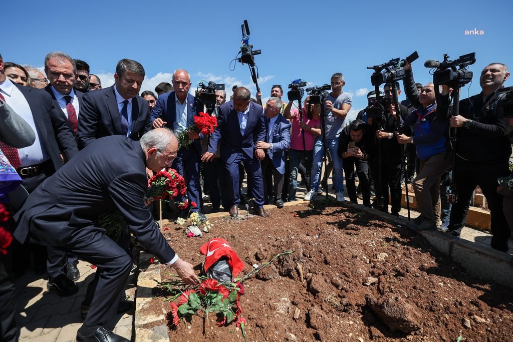 Cumhurbaşkanı Adayı ve CHP Lideri Kılıçdaroğlu, bayramın ilk gününde Adıyaman’a geldi. Kılıçdaroğlu, sabahleyin ilk olarak Adıyaman Belediyesi Mezarlığı’na gelerek depremde yaşamını yitiren yurttaşların mezarlarını ziyaret etti, karanfil bırakarak dua etti.