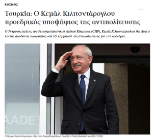 KATHIMERINI: “Muhalefetin cumhurbaşkanı adayı Kemal Kılıçdaroğlu. CHP’nin 74 yaşındaki lideri Kemal Kılıçdaroğlu, altı muhalefet partisinin cumhurbaşkanlığı için uzlaştığı aday olacak.”