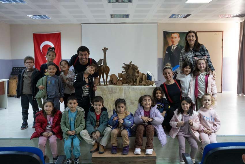(İZMİR) – İzmir Şehir Tiyatroları’nın çocukları sanatla buluşturmak üzere Buca’da sahnelediği “Kendini Arayan Zürafa” oyununda, minikler oyunun şarkılarına hep bir ağızdan eşlik etti.
