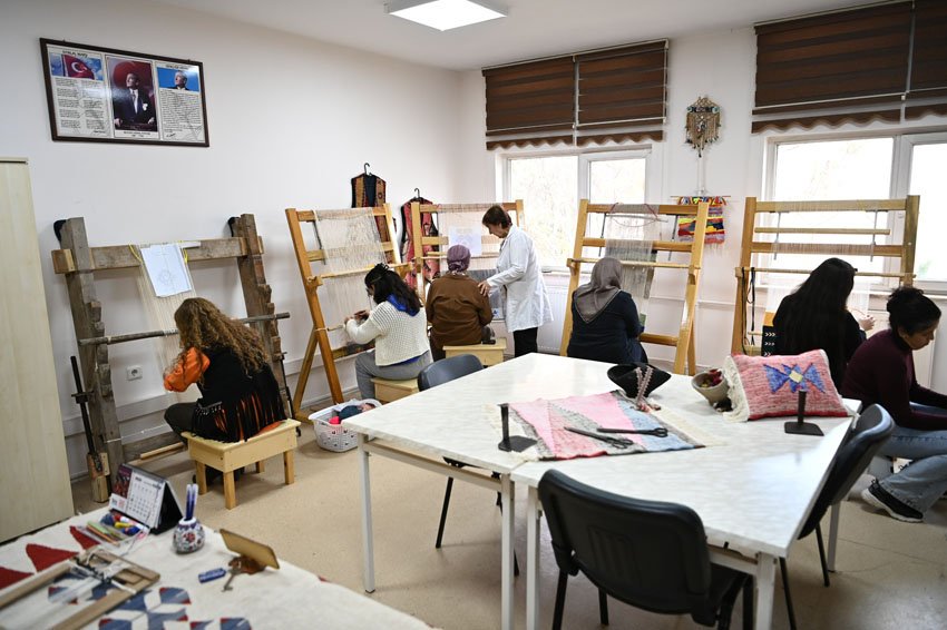 Mamak Belediyesi Ahmet Yesevi Aile Merkezi’nde bulunan Kilim Dokuma Atölyesi’nde, aktif olarak 20 kursiyer kilim dokuma eğitimi alırken, engelli bireylerin sanata ve üretime katılımını desteklemek amacıyla da üç engelli kursiyer için özel ders programı uygulanıyor. Verilen eğitimlerde germe tezgâh sistemi kullanılarak, yöresel dokuma teknikleri uygulamalı olarak öğretiliyor.