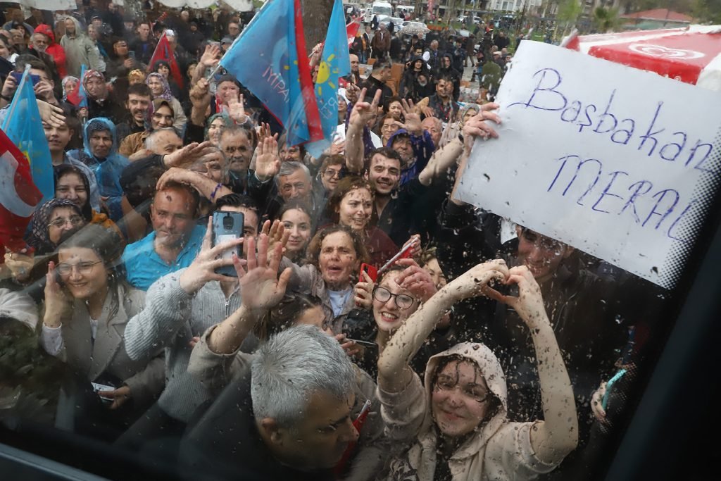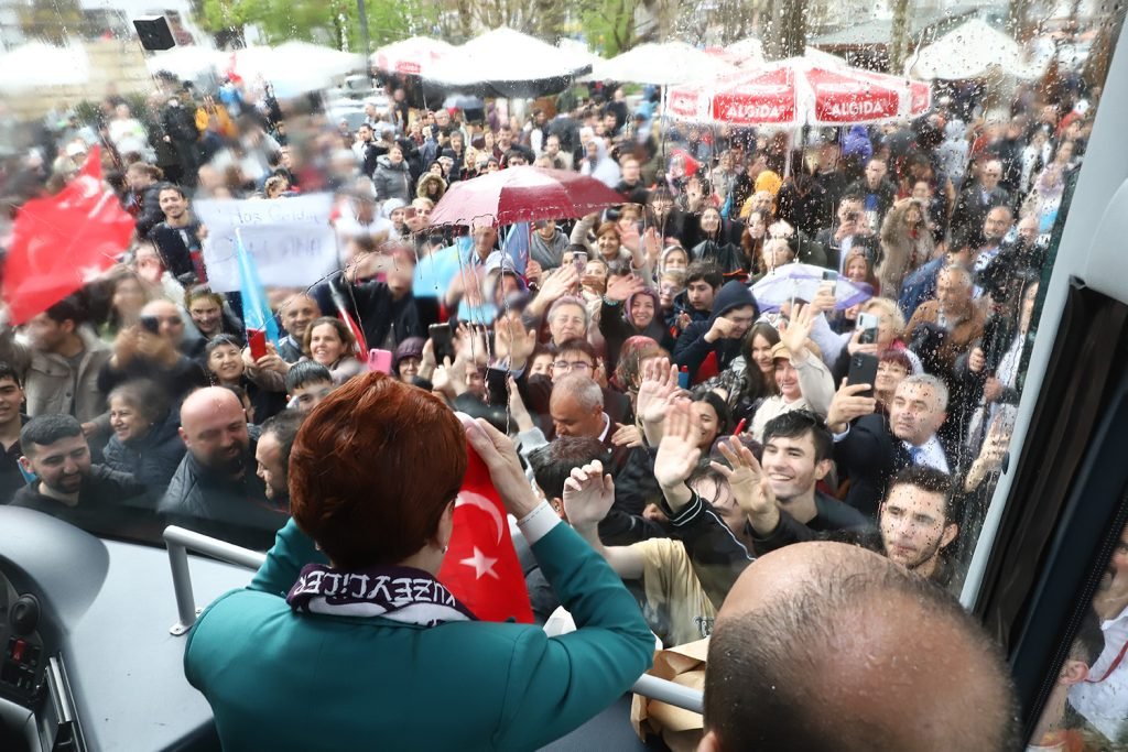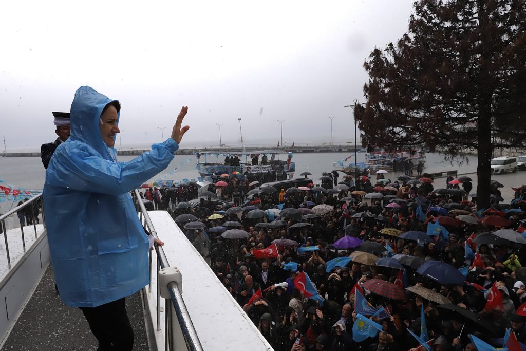 İYİ Parti Genel Başkanı Meral Akşener, Ankara Büyükşehir Belediye Başkanı Mansur Yavaş ile birlikte Sinop İskele Meydanı’nda vatandaşlara seslendi. Sağanak yağmur ve dolu yağışı altında, yağmurlukla konuşan Akşener, “Şimdi bana dediler ki, ‘Çıkma dolu yağıyor.’ Benim milletim dolu karşısında, burada duruyorsa Meral Akşener çıkmaz mı? Allah her birinizden razı olsun” dedi.