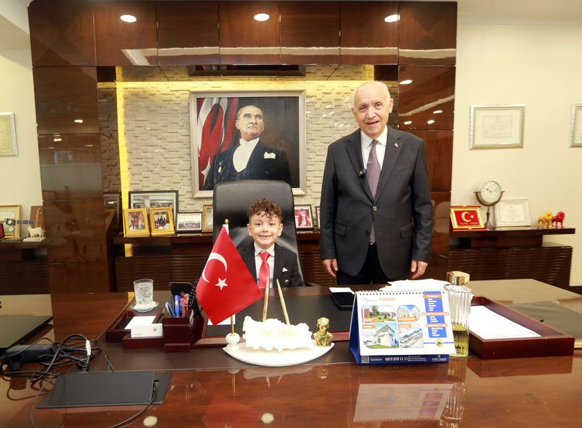 Temsili devir teslim töreni ile başlayan etkinliklerde, Yenimahalleli çocukları makamında ağırlayan Yenimahalle Belediye Başkanı Fethi Yaşar, koltuğunu Şehit Komiser Yardımcısı Şükrü Can Kayadibi’nin kızı Feyza Kayadibi’ne teslim etti. Günün başkanı olan Feyza, tüm çocuklar için sağlık, barış ve mutluluk diledi.