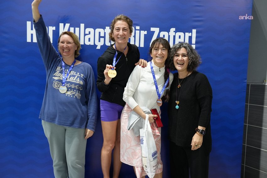 İlk kez bir yarışmaya katıldığını ifade eden Neslihan Bağlaç ise 40 yaş üstü kategoride 100 metre serbestte birinci olduğunu söyledi. Bağlaç, “İlk yarışım, ilk yarışta birincilik aldım 100 metre serbest 40 yaş üstü. Mutluyum, gururluyum. Arkadaşlarıma teşekkür ediyorum, her zaman bana destek oldular. Arkadaşlarım beni devamlı desteklediler, motive ettiler, kazanman gerekiyor dediler. Ben de geldim, buradayım. Aslında antrenman yaptığım havuz 25 metre, orada hazırlandım. Son birkaç gündür özellikle pazartesi, salı, çarşamba günleri antrenman yaptım. Tabii devamlı havuzdayım, İBB tesislerinde” ifadelerini kullandı.