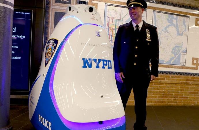 New York Polis Departmanı (NYPD), Times Meydanı metro istasyonunda yeni bir güvenlik önlemi uyguluyor ve yetkililerin “insanları güvende tutmak” için olduğunu söyledikleri bir güvenlik robotunu devriye gezmesi için görevlendiriyor. RoboCop benzeri bir makineden ya da insan benzeri iki ayaklı bir robottan bahsetmiyoruz. Kaliforniya merkezli Knightscope şirketi tarafından üretilen K5, R2-D2’nin devasa bir versiyonu gibi görünüyor. Gizlilik hakları grubu Surveillance Technology Oversight Project‘in yönetici direktörü Albert Fox Cahn ise K5 için pek de övgü dolu bir tanımlama yapmıyor; The New York Times’a verdiği demeçte K5’in “tekerlekli bir çöp tenekesi” gibi olduğunu söylüyor.