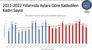 Türkiye Kadın Dernekleri Federasyonu, kadın cinayetlerine ilişkin 2021 ve 2022 yılı verilerini karşılaştırmalı olarak açıkladı. Buna göre, 2021 yılında 348 olan kadın cinayeti sayısı 2022 yılında 381’e çıktı. 2022 yılında en çok kadın cinayetinin işlendiği ekim ayında, 39 kadın öldürüldü.