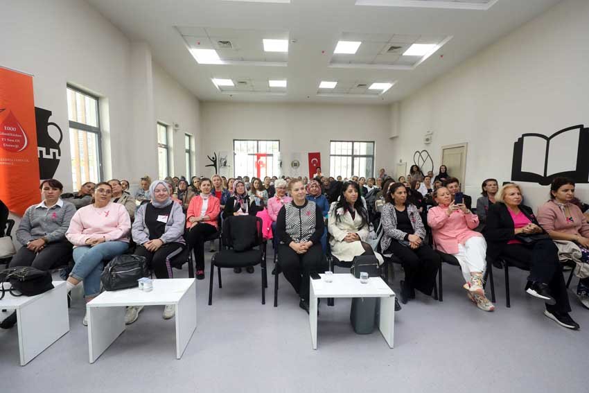 Meme Kanseri nedir, Meme Kanseri için risk faktörleri nelerdir, Neden erken tanı, Meme kanseri için muayene, hangi belirtiler riskli gibi başlıklar altında düzenlenen toplantıda; 20’li yaşlardan itibaren kişinin kendini kontrol etmeye başlaması ve meme yapısını, cildini ve bunlardaki değişimi gözlemlemesi gerektiği belirtilirken, özellikle 40 yaş itibariyle yılda bir mamografi yapılmasının önemi vurgulandı.