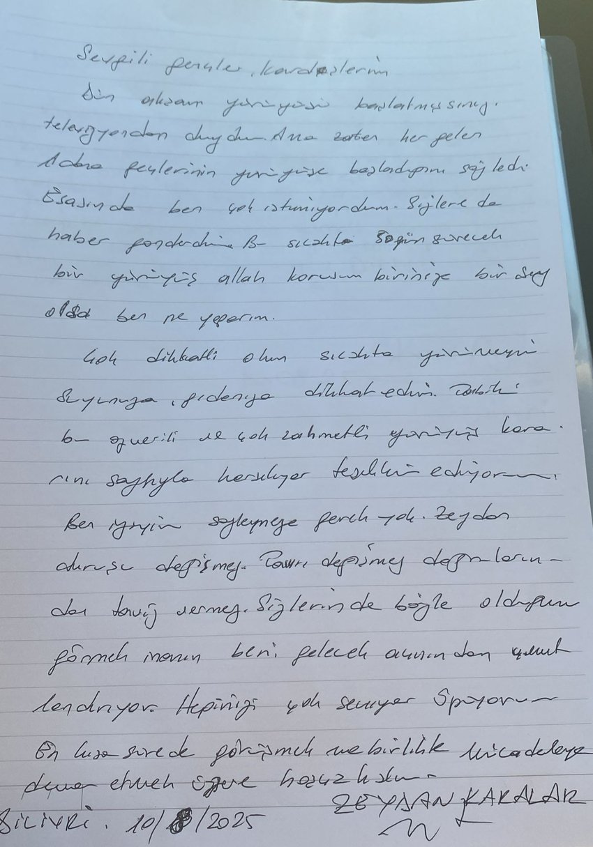 En kısa sürede görüşmek ve birlikte mücadeleye devam etmek üzere hoşça kalın.”